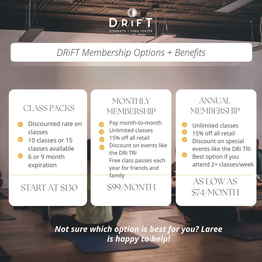 Whether you're building strength, grounding into your breath, or just carving out time for yourself each week, membership makes it easier (and more affordable) to commit to your practice.